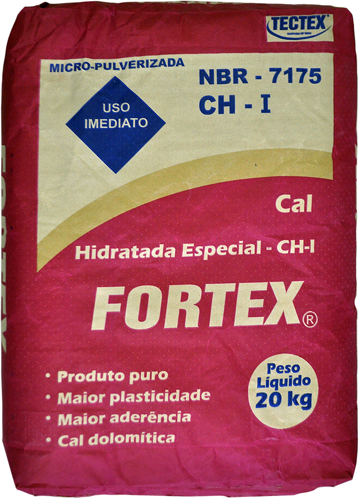 Com mais de 20 anos de mercado a Cal Hidratada Fortex CH – I é sinônimo de qualidade por onde passa, com seu alto índice de plasticidade e revestimento devido ao seu alto teor de Hidróxido de Magnésio é indicada para preparação de diversos tipos de argamassas. Por suas características únicas além de proporcionar plasticidade e liga às argamassas com ela preparadas, apresenta propriedade aglomerante sem igual, conferindo maior aderência, resistência, elasticidade e economia para a argamassa. A Cal Hidratada Fortex CH – I é apresentada em sacos de papel valvulados com conteúdo de 20Kg cada.