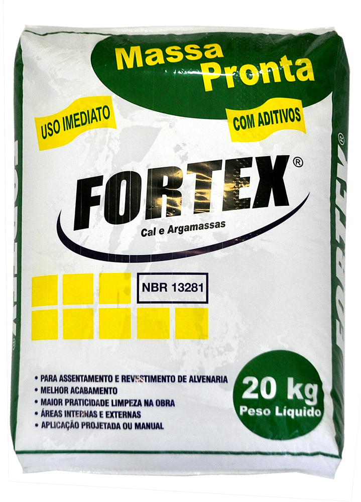 Chegando para facilitar e economizar,a Massa Pronta Fortex é um produto composto por cimento, cal hidratada, areia artificial classificada e aditivos de alta qualidade. Por ser de fácil uso, economiza tempo e espaço na obra sendo ideal para reformas e pequenos reparos. Apresentada em sacos plásticos de 20 Kg.